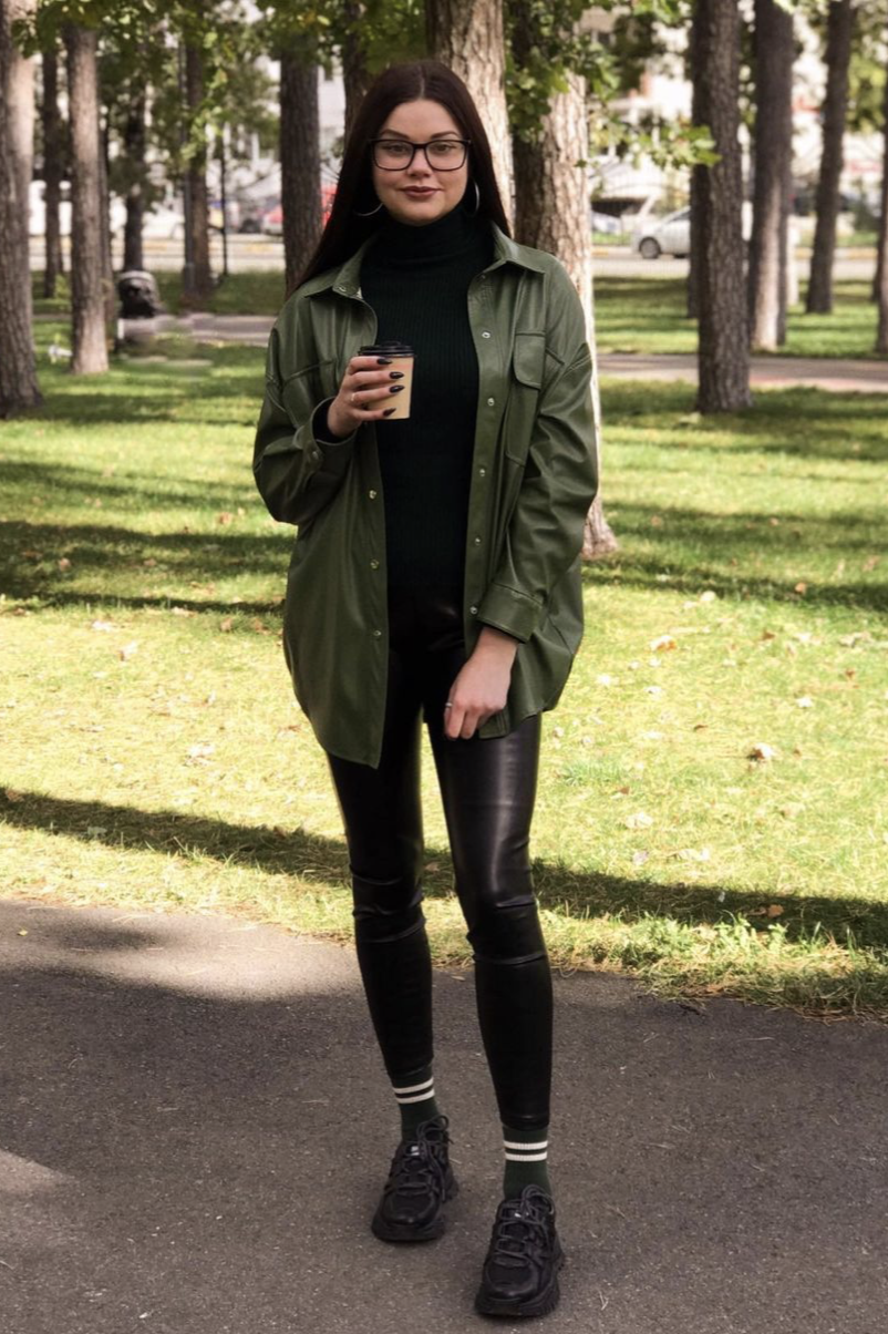 Модний одяг сезону 2021-2021 безумовно має практичність. На вашу увагу, ліворуч на Мілі (@ya_horoshaya_) сорочка в клітку з теплої тканини. На лівому фото, Олена вибрала сорочку з екошкіри.